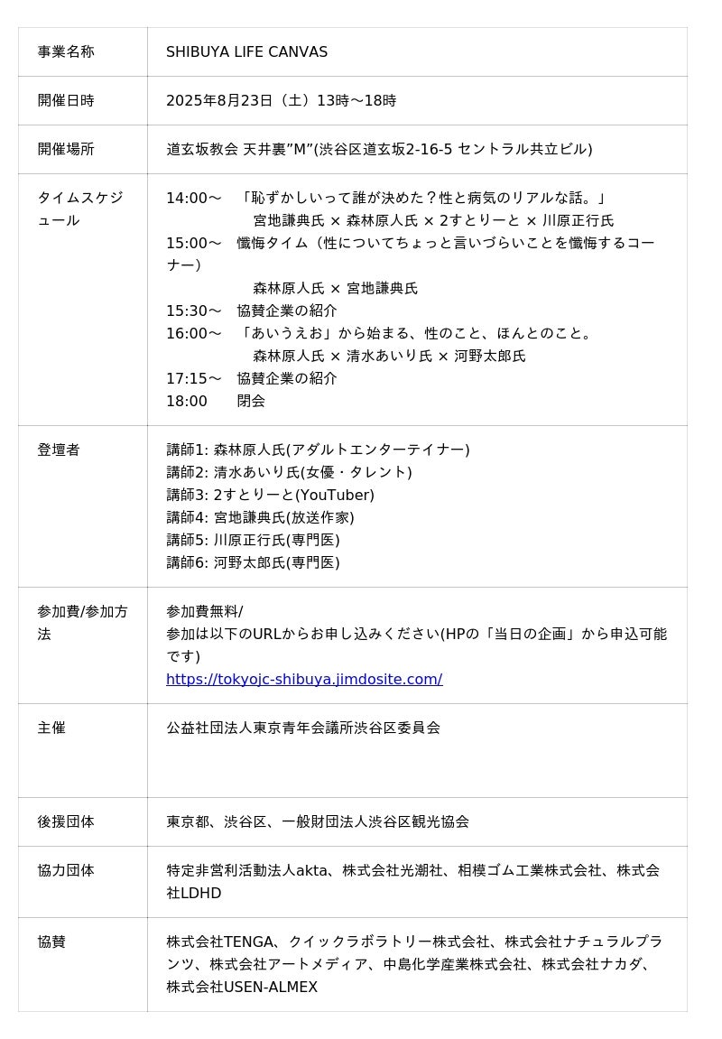 性感染症に対する認識、予防知識を楽しく学ぶイベント「SHIBUYA LIFE CANVAS」を開催致します!