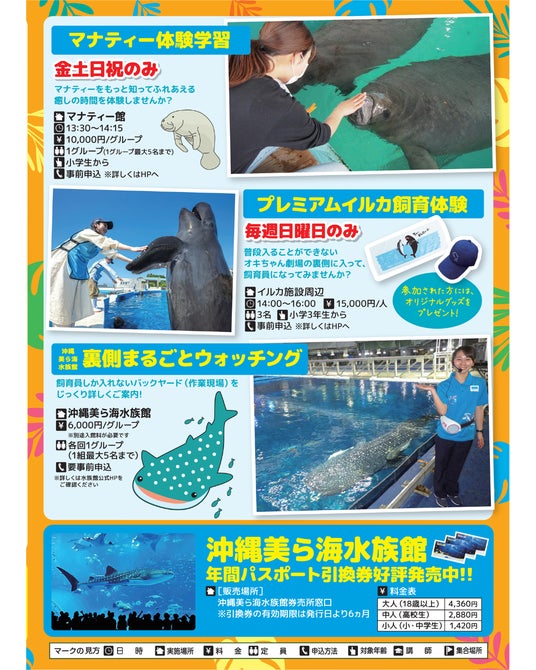 そのほか、ビーチクリーンボランティアやプレミアムイルカ飼育体験など、楽しいイベントが盛りだくさん!