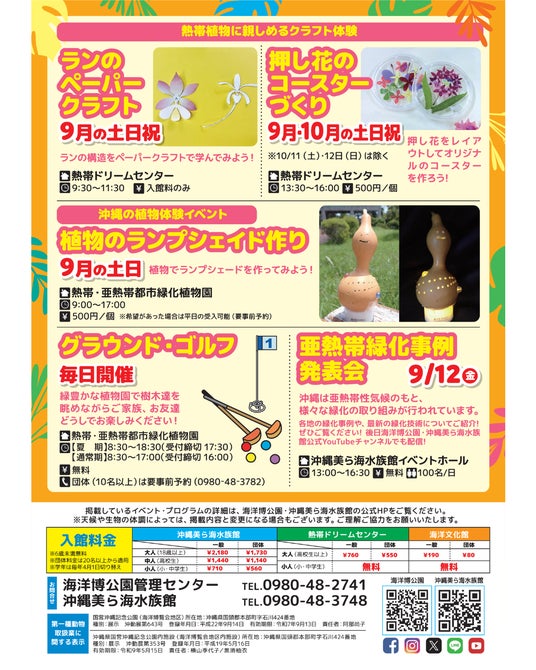 海洋博公園管理センター イベント・広報係(TEL:0980-48-2741 )までお問い合わせください。