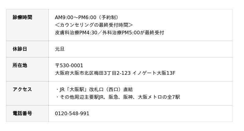 湘南美容クリニック大阪梅田本院 クリニック情報