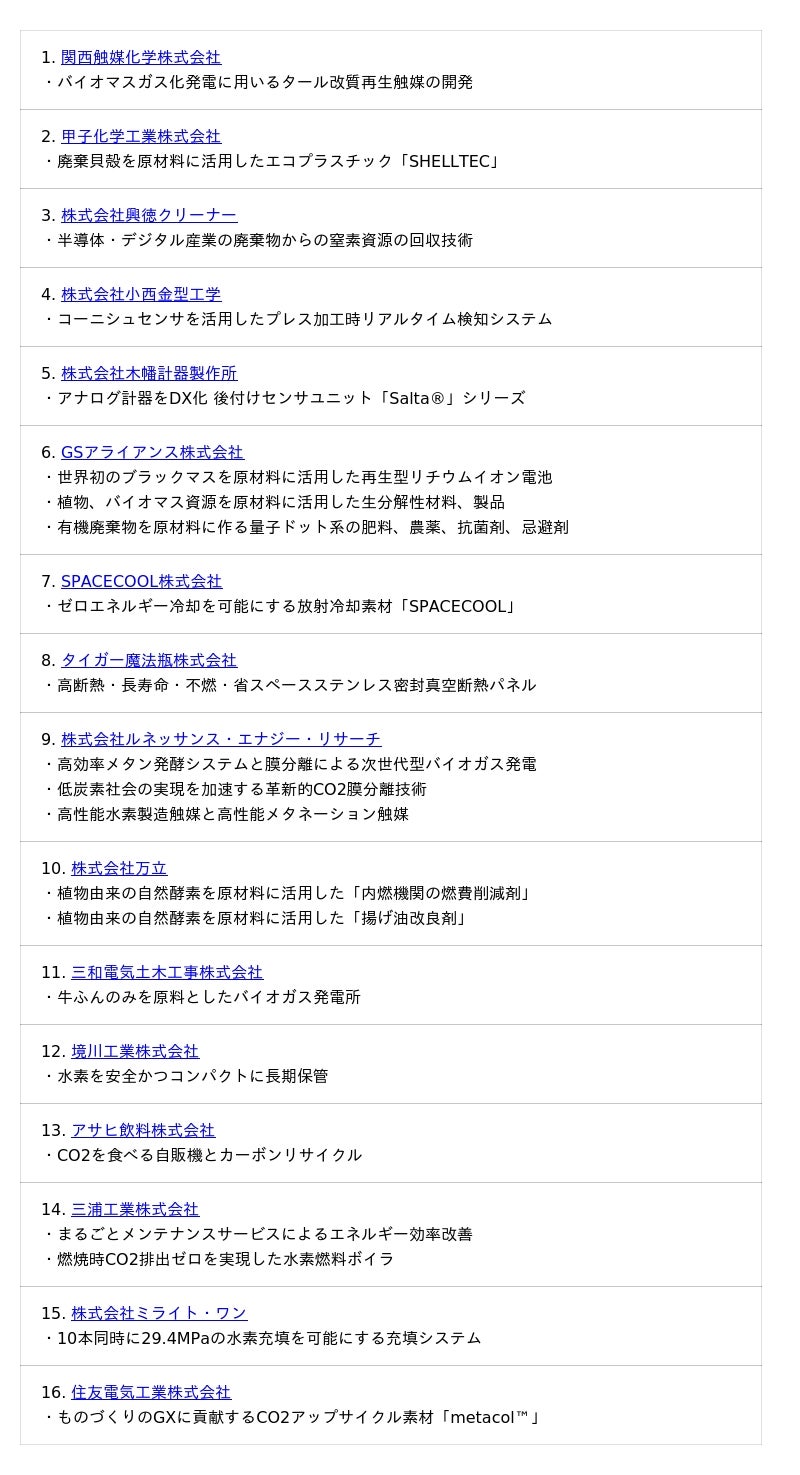 世界が注目するカーボンニュートラル技術と、限りある資源を再生・活用して生まれたリサイクル製品を製造する計21社が自社の技術や製品を展示します。
