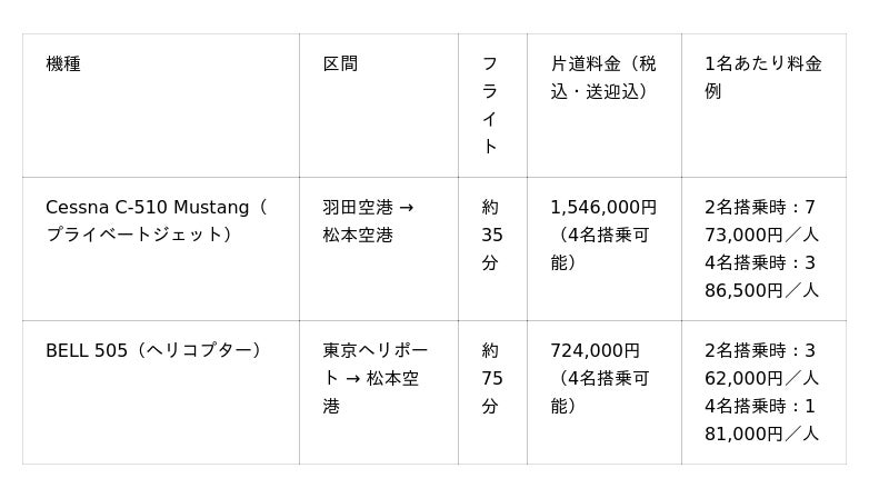 今回の取り組みにより、地上では数時間を要していた長野・蓼科へのアクセスを大幅に短縮。移動時間をプライベートな空間で、より快適にお過ごしいただけます。