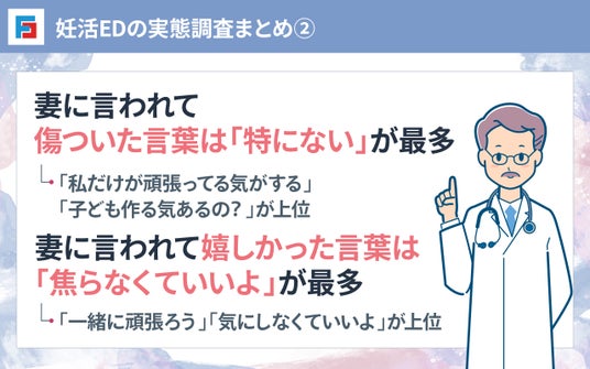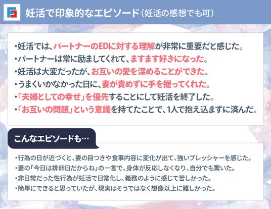 妊活EDは、症状だけでなく、背景にある夫婦間の心の動きにも目を向ける必要があるテーマであることが伝わってきます。