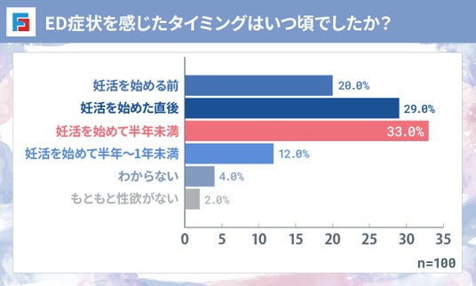 妊活中にED症状を感じたタイミングは「半年未満」が最多