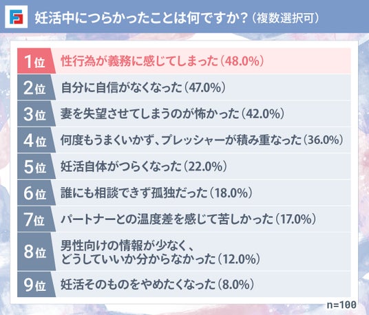 妊活中につらかったこと1位は「性行為が義務に感じてしまった」こと