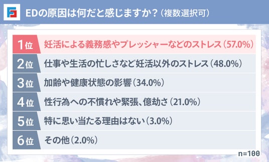 EDの原因として最も多く挙げられたのは、「妊活による義務感やプレッシャーなどのストレス」でした。