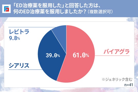 ED治療薬を服用した人の中で、使用された薬は「バイアグラ」が最多となりました。
