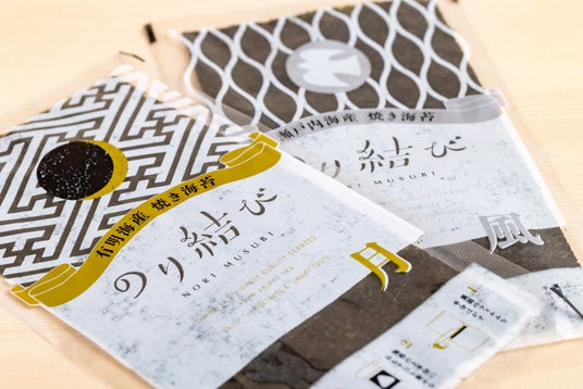 大森屋「のり結び」 各60円(税込)「有明海産 焼き海苔 月」「瀬戸内海産 焼き海苔 風」