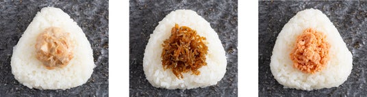 左から、「銀白おにぎり」 216円、「おかか」 260円、「日高昆布」 281円