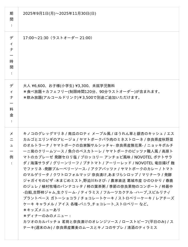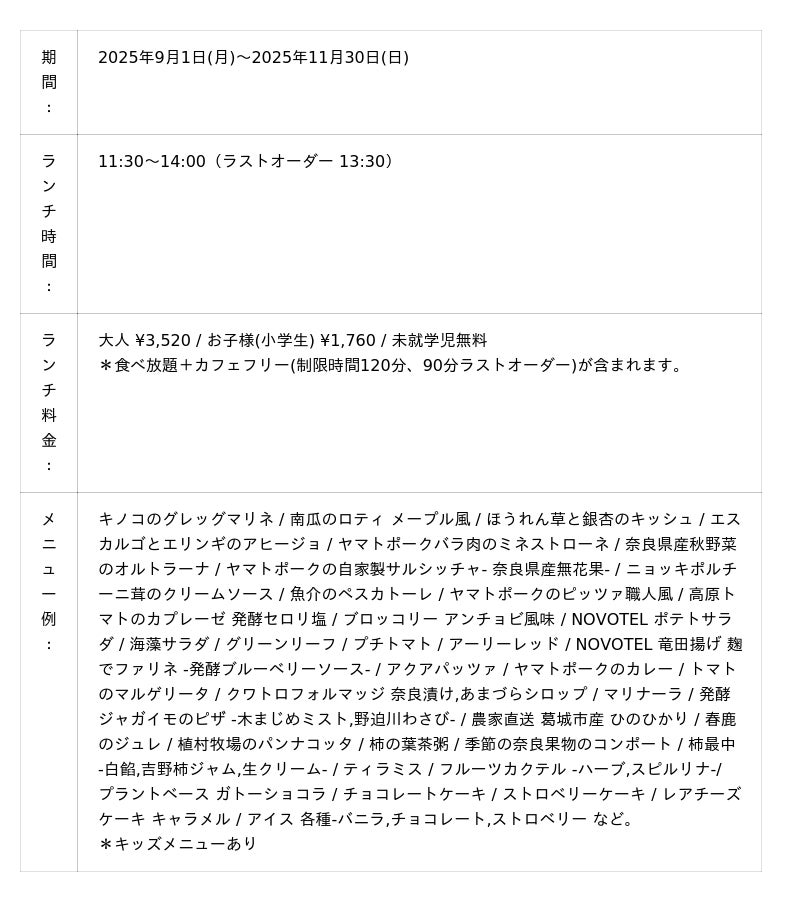 奈良の秋グルメが盛りだくさんランチブッフェ