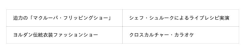 本イベントは2025年9月2日(火)1日限定で、ヨルダンの魅力を再発見するイベントです。催事の4つのプログラムをご紹介いたします。