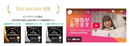 ※本記事でご紹介している受賞実績は、結婚相談所グレイスマリッジ広尾の婚活カウンセラー・小西明美がTMSパートナーとして担当している結婚相談所での取り組みに対して授与されたものです。