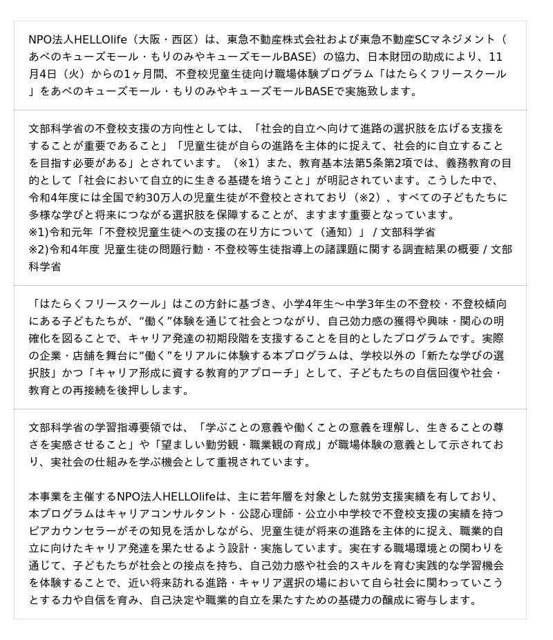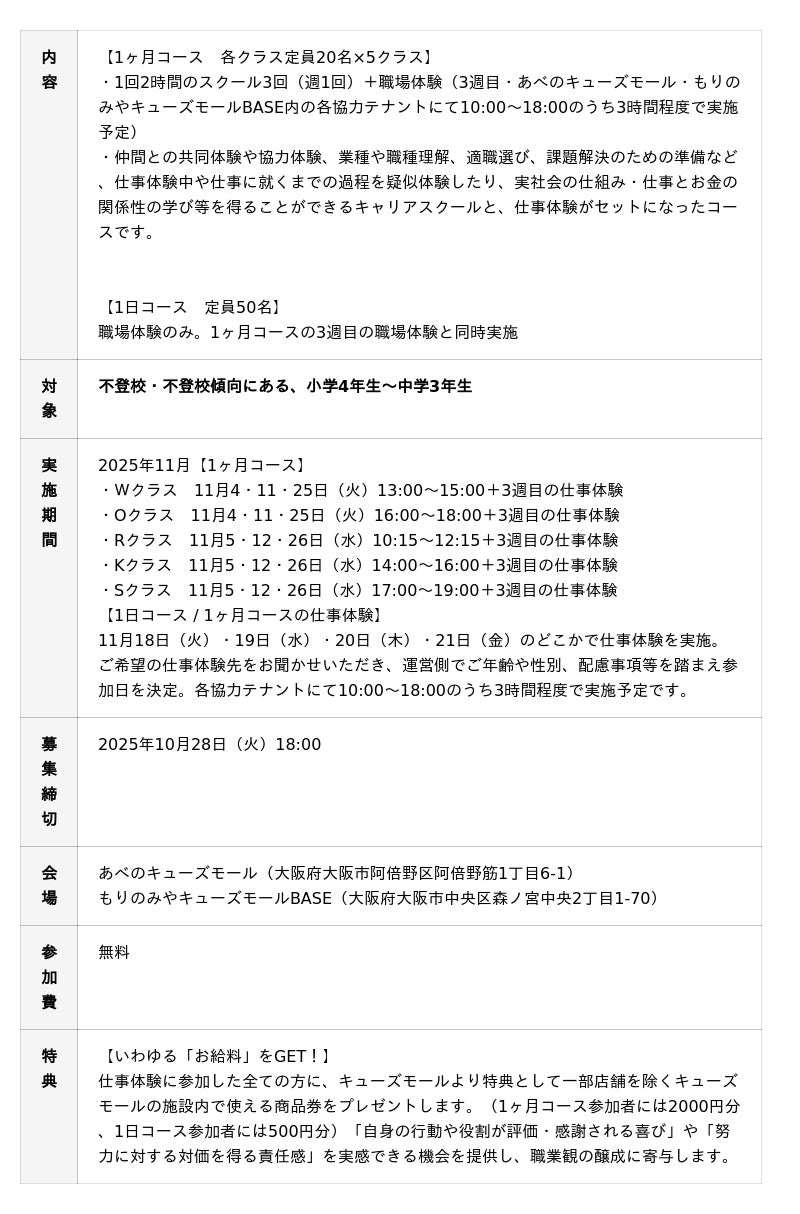 ~9月・夏休み明けに増える不登校相談 “行きづらさ”に寄り添う新たな学びの選択肢を~不登校児童生徒向け職場体験プログラム「はたらくフリースクール」第2回実施決定