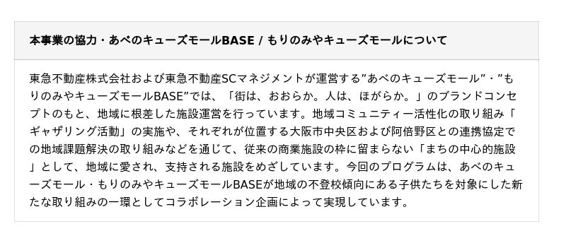 夏休み明けは、長期休暇からの生活リズムの変化や、新学期に向けた不安から“行きづらさ”を感じる子どもが増える時期です。そのため、不登校に関する相談が増加する傾向があることも知られています。報道関係者の皆様におかれましては、そういった時期にひとつの選択肢として本プロジェクトの存在を多くの方に届けるため、取材や記事掲載のご協力をお願い致します。