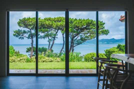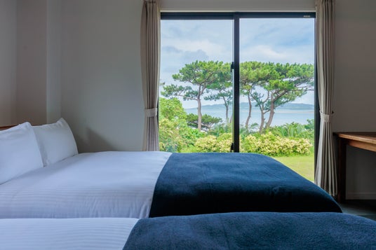 宿のリビングや寝室からは、名蔵湾を一望できるオーシャンビューが広がり、刻一刻と変わる海と空の色が滞在を彩ります。