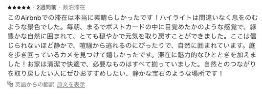 【実際頂いた海外の宿泊者様からのレビューコメント】