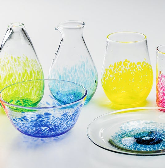 これまで、吹きガラス・キルンワーク・バーナーワーク・ステンドグラス・陶芸・染色・織物・木工・金工の9つの工房を通じて、多くの方々にものづくりの楽しさと工芸の魅力をお届けしてまいりました。