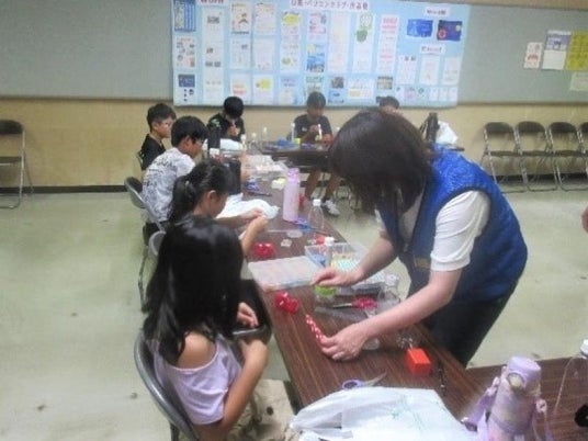 今回の出展は、昨年度惜しくも抽選にもれて参加できなかった子どもたちの残念がる声を受け、昨年度同様「ペットボトルでつくるキラキラ万華鏡」、「入浴剤を作ろう」、「スライムで遊ぼう」の3つのテーマで実施しました。