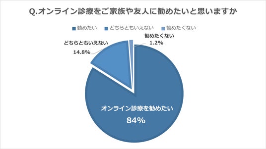 ご家族や友人にオンライン診療を勧めたい … 84%