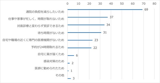 オンライン診療を選ぶ理由 … 「通院の負担を減らしたい」69名