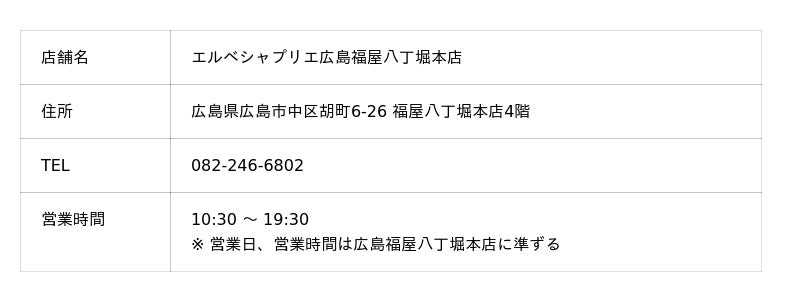 新たに生まれ変わった『エルベシャプリエ広島福屋八丁堀本店』に、ぜひお立ち寄りください。