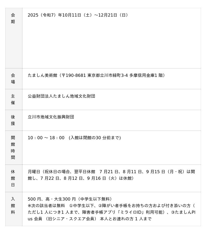 本展は、たましんコレクションの美術作品とともに歴史資料も展示することで、それぞれの制作背景や主題に着目しつつ多摩地域の過去から現在に至る姿を脳内で追体験し、多摩の空のつながりに思いをはせる展覧会です。