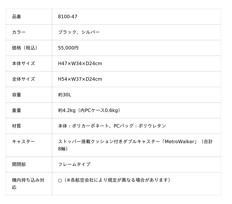 製品URL: https://tands-luggage.jp/products/8100_hard-case