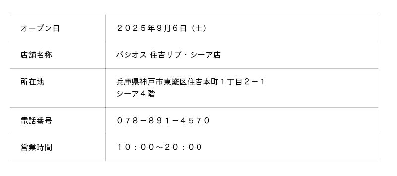 株式会社田原屋(本社所在地:神奈川県川崎市、代表取締役会長:田熊 太郎、代表取締役社長:甲斐 直裕)は、2025年9月6日(土)兵庫県神戸市東灘区の商業施設「リブ・シーア」内に、「パシオス 住吉リブ・シーア店」をオープンいたします。本店舗は、当社にとって神戸市初の出店となり、関西エリアでのさらなる店舗網拡大を図る重要な拠点として位置付けています。