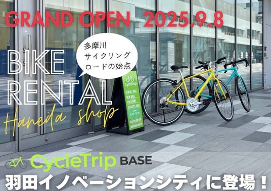 日本最大級のスポーツ自転車専門レンタル店CycleTrip BASEが秋葉原店、名古屋店に続く第3店舗目となる羽田店(CycleTrip BASE Haneda)を東京都大田区にある複合施設、羽田イノベーションシティにて2025年9月8日グランドオープンします!