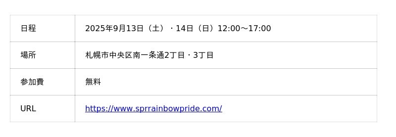 今回の「さっぽろレインボープライド2025」への出展を通じて、多様性に関する理解をさらに広め、誰もが自分らしく生きられる社会づくりに貢献してまいります。