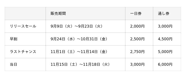 前売チケットが9月9日より販売開始!早く買うほどお得に。
