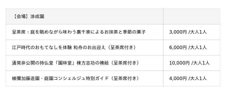 ※渉成園におけるプログラムチケットのみをご購入の場合は、渉成園ご入園の際に庭園維持寄付金として、大人700円/中高生300円がかかります。
