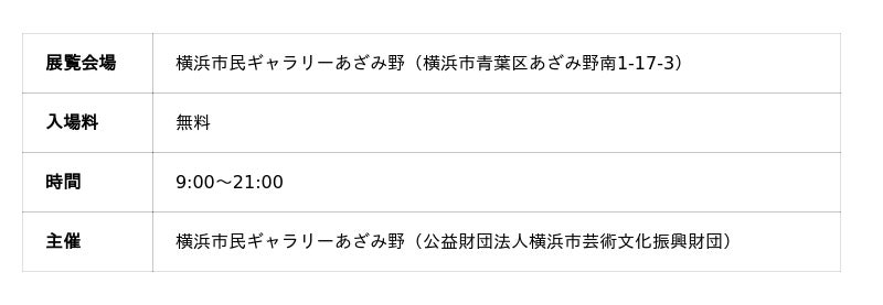 〒225-0012 横浜市青葉区あざみ野南1-17-3 アートフォーラムあざみ野 内