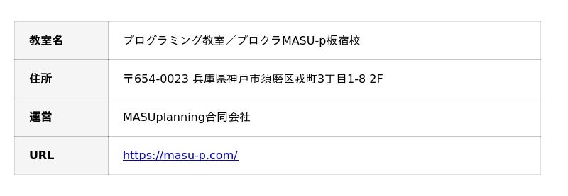 兵庫県神戸市須磨区の多目的レンタルスペース「MASU-p板宿」(運営:MASUplanning合同会社、代表:水村晋輔)内のプログラミング教室「プロクラ」(提供:株式会社KEC Miriz、本社:大阪府大阪市、取締役:冨樫優太)は、この度、AI時代を生きる子どもたちの未来を育むことを目的として、小学生を対象に無料体験会を開催いたします。また、9月の体験期間中にご入会を決定された方を対象に、10月1ヶ月間の授業料が無料になるキャンペーンも実施いたします。
