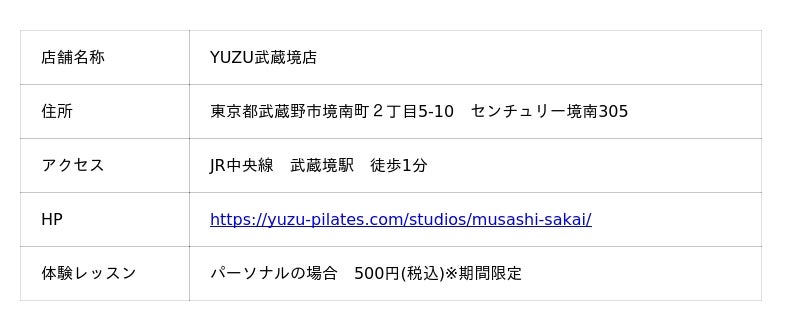 武蔵境駅に、ココロとカラダの健康美をサポートするピラティスレッスンを提供しているYUZUが通算54号店目を9月にOPEN!