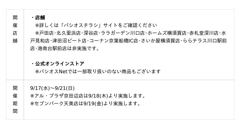 ・「パシオス公式LINE」(https://lin.ee/BbL0ZDj)
