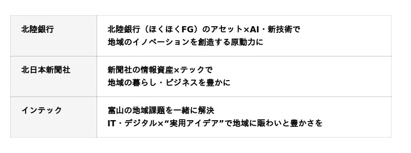 (株式会社北陸銀行、株式会社北日本新聞社、株式会社インテック)
