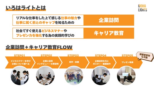 いろはライトは、主催者である大西が中学3年生の時に進路に迷った経験から生まれました。働く大人のリアルな声を聞くことで、将来の夢を見つけてたいという想いから、企業訪問やビジネスマナーなどの実践的なキャリア教育を学生向けに提供しています。