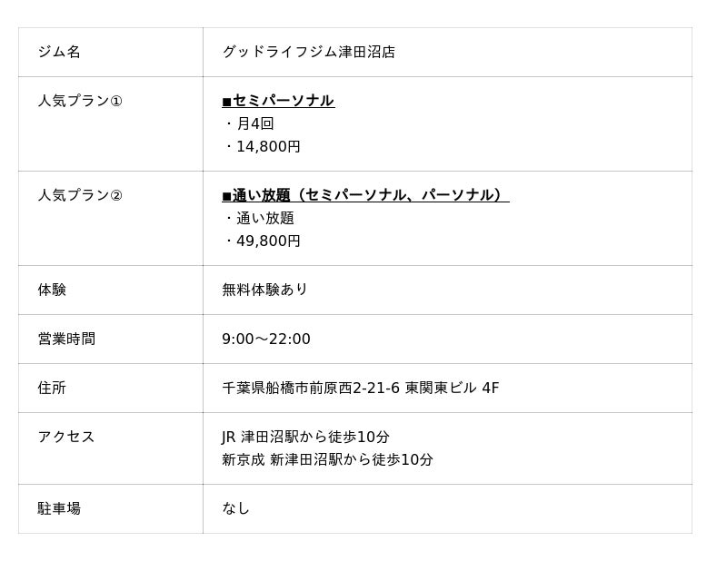 グッドライフジム津田沼店のHPはこちら