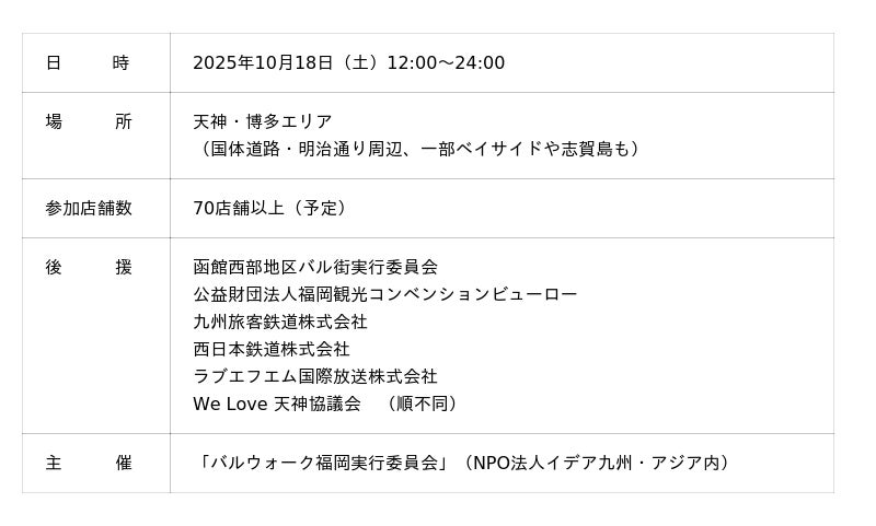 「バルウォーク福岡」2025年10月18日(土)に開催。主催「バルウォーク福岡実行委員会」