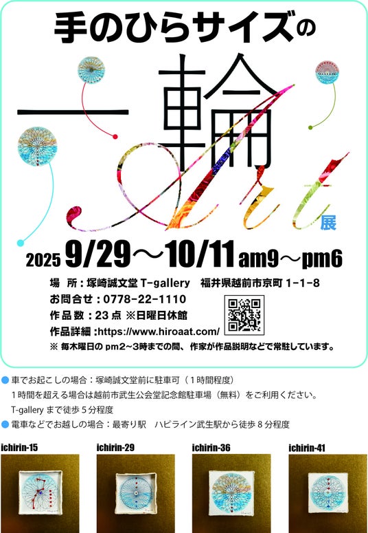 福井県越前市で画材店を営む塚崎誠文堂のT-galleryで「手のひらサイズの一輪アート展」を開催します。