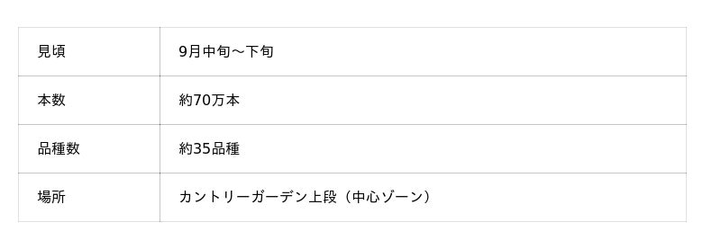この時期限定のフォトスポットや色や形のユニークなコスモスなども登場します。