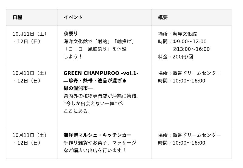 海洋博公園管理センター 企画運営課 イベント・広報係(TEL:0980-48-2741 )までお問い合わせください。