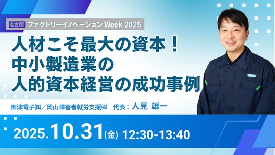 2025年10月29日(水)~31日(金)に名古屋で開催されるFactory Innovation Week 2025にて、御津電子株式会社 代表取締役 人見 雄一が「人材こそ最大の資本!中小製造業の人的資本経営の成功事例」をテーマに特別講演を行います。