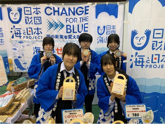 一般社団法人海と日本プロジェクトin岩手は、岩手県宮古市の高校生と連携し、岩手県の美しい海を守ることを目的としたプロジェクト「いわて海ごみゼロ大作戦 in 宮古 ~エターナルグリーンの海を守る!~」を進めています。この度、プロジェクトに参加する高校生が海洋ごみ問題の啓発のために開発したオリジナルアイテムの販売会を、2025年9月20日(土)・21日(日)の2日間、岩手県滝沢市「ツガワ未来館アピオ 岩手産業文化センター」にて開催される「IBCまつり2025」の会場内で実施いたしました。