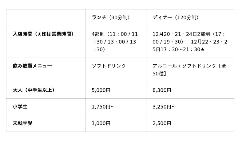 【ランチ提供期間・時間】 12月13日(土)~25日(木)11:30~14:30