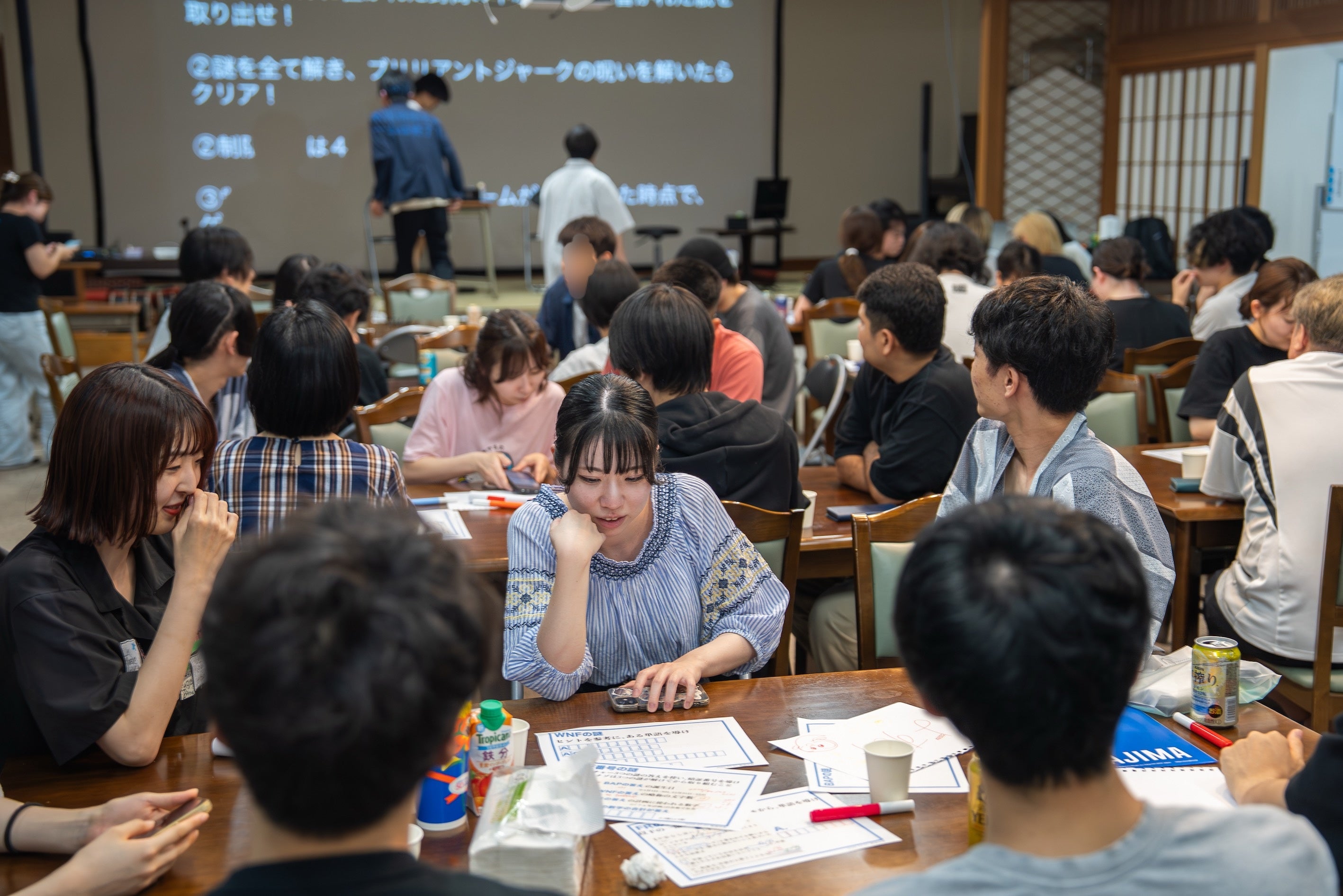 約70平方メートル の広い和室と洋室。各部屋にWi-Fiとプロジェクター完備で快適な作業空間。