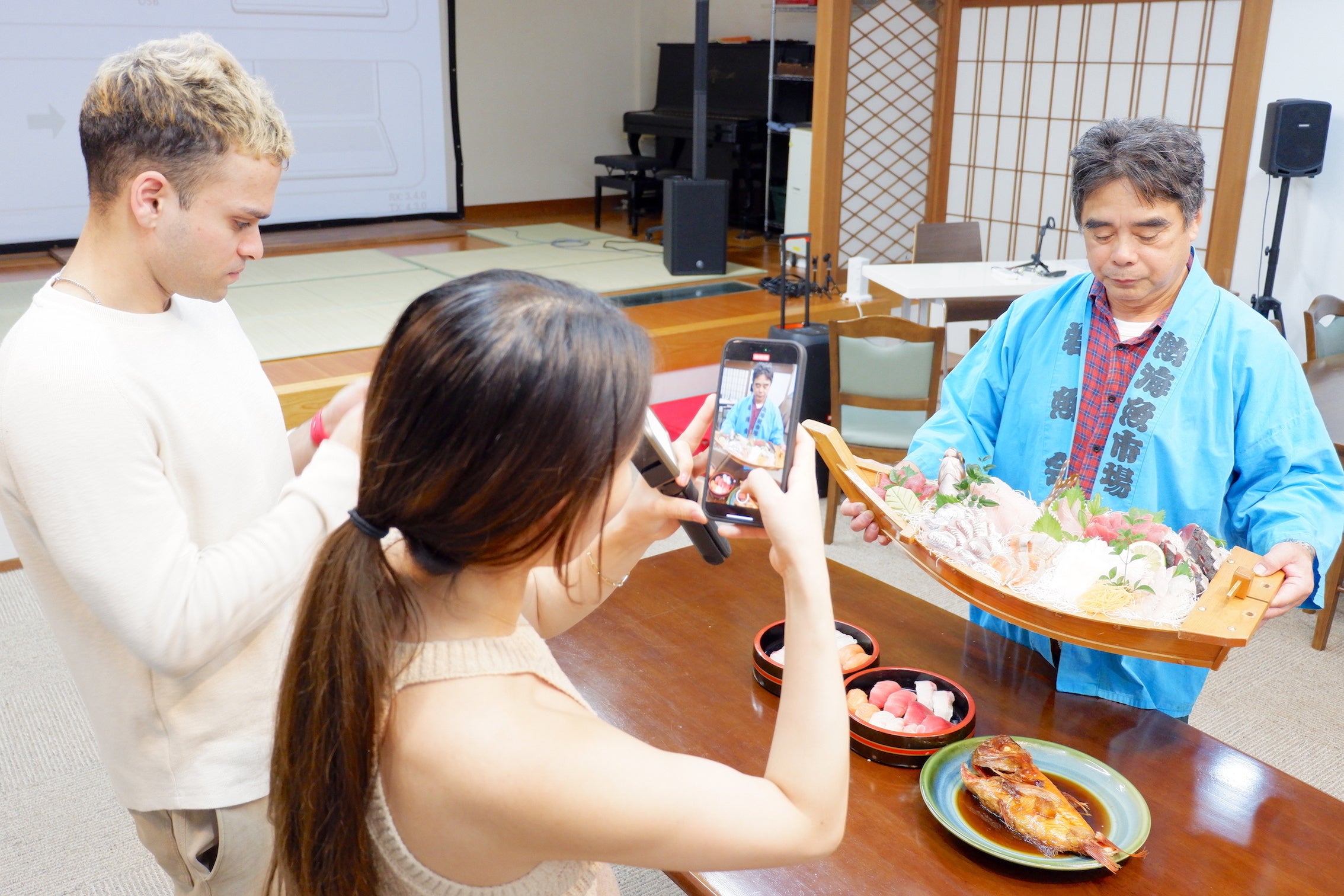 原則素泊まり宿のため、地元仕出し弁当やケータリング手配、自炊可能なキッチンも完備。地元の鮮魚店直送の刺身の舟盛りや金目鯛の煮付けも人気です。