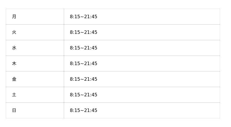 ※オープン時の営業時間となり、変更となっている可能性がございます。
