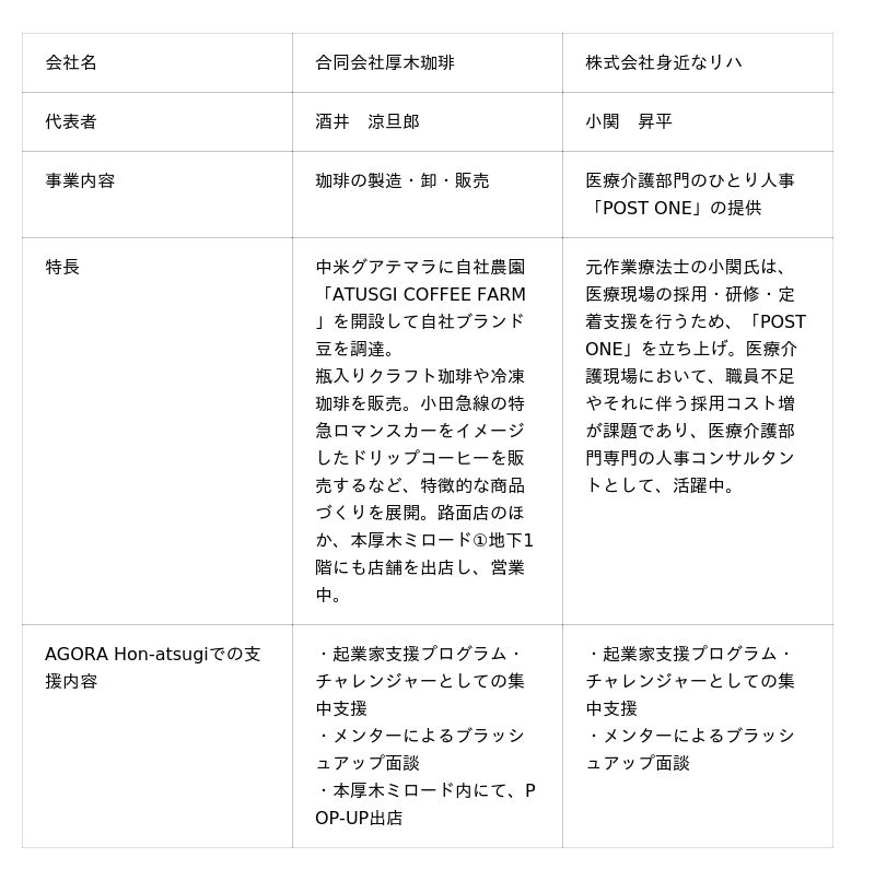 ■「AGORA Hon-atsugi」出身の代表的な起業事例